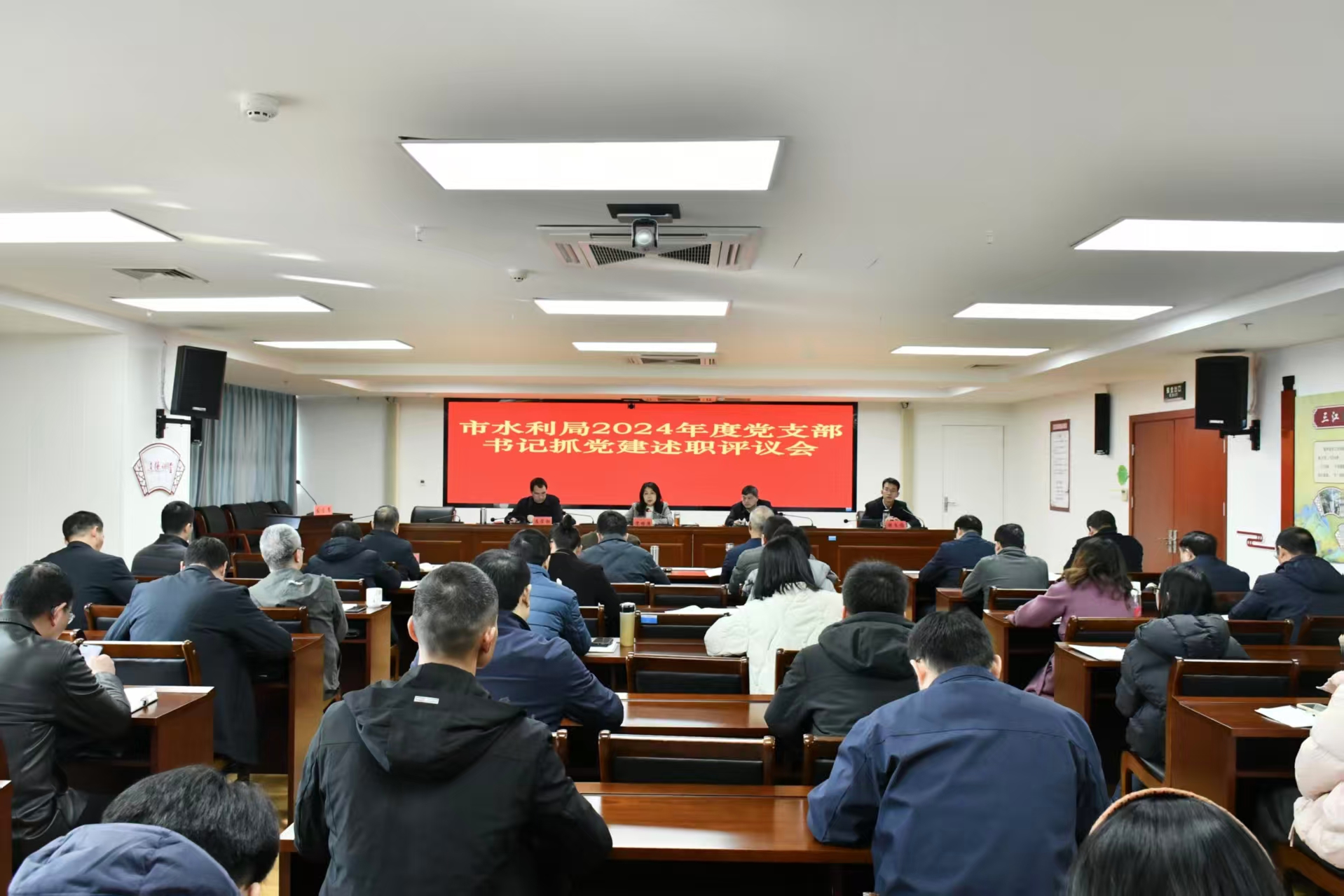 局机关及下属事业单位副科级及以上干部(含各科室履行副科长职责人员),市水利设计院班子成员,各党支部书记及党员、群众代表参加了会议,并进行了现场民主评议。