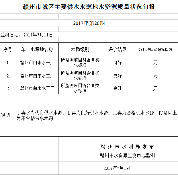 赣州市水质旬报2017年第20期 | 澳門太陽城专业娱樂平台